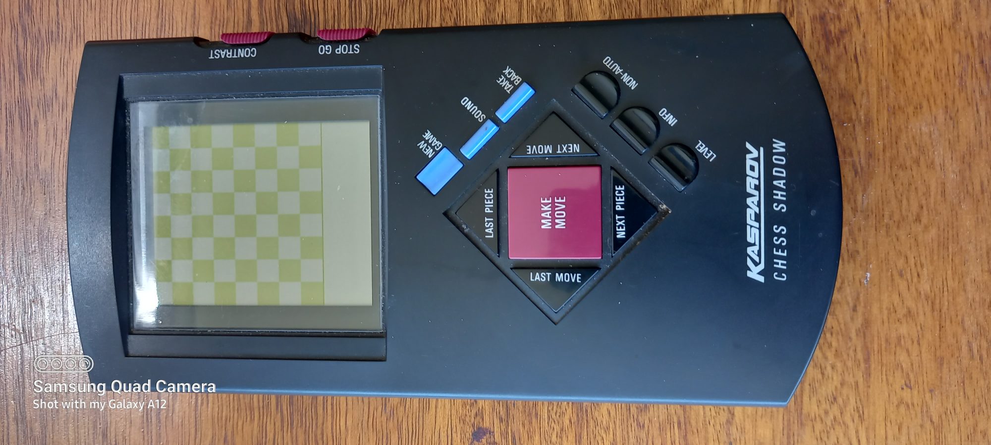 I recently acquired a Kasparov Chess Shadow handheld portable computer, which I added to my collection of chess sets. I believe it dates back to the 80s or 90s. Despite being an older device, it's in excellent condition and only requires small batteries.